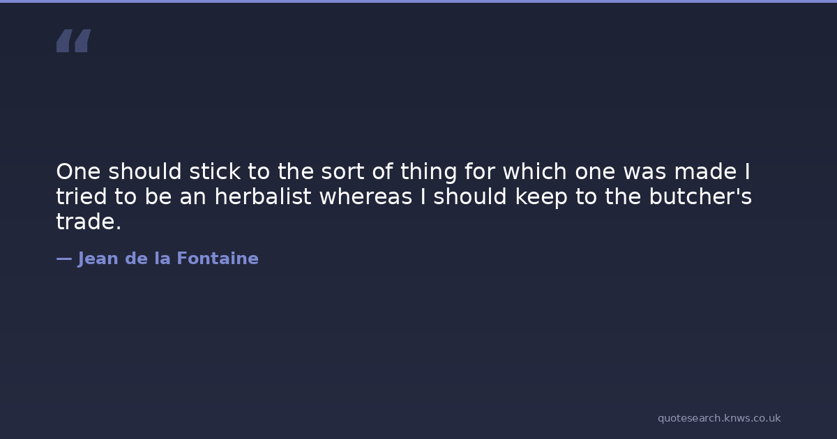 One should stick to the sort of thing for which one was made I tried to be an herbalist whereas I should keep to the butcher's trade.