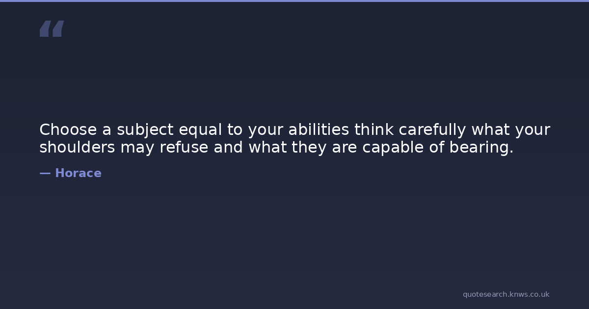Choose a subject equal to your abilities think carefully what your shoulders may refuse and what they are capable of bearing.