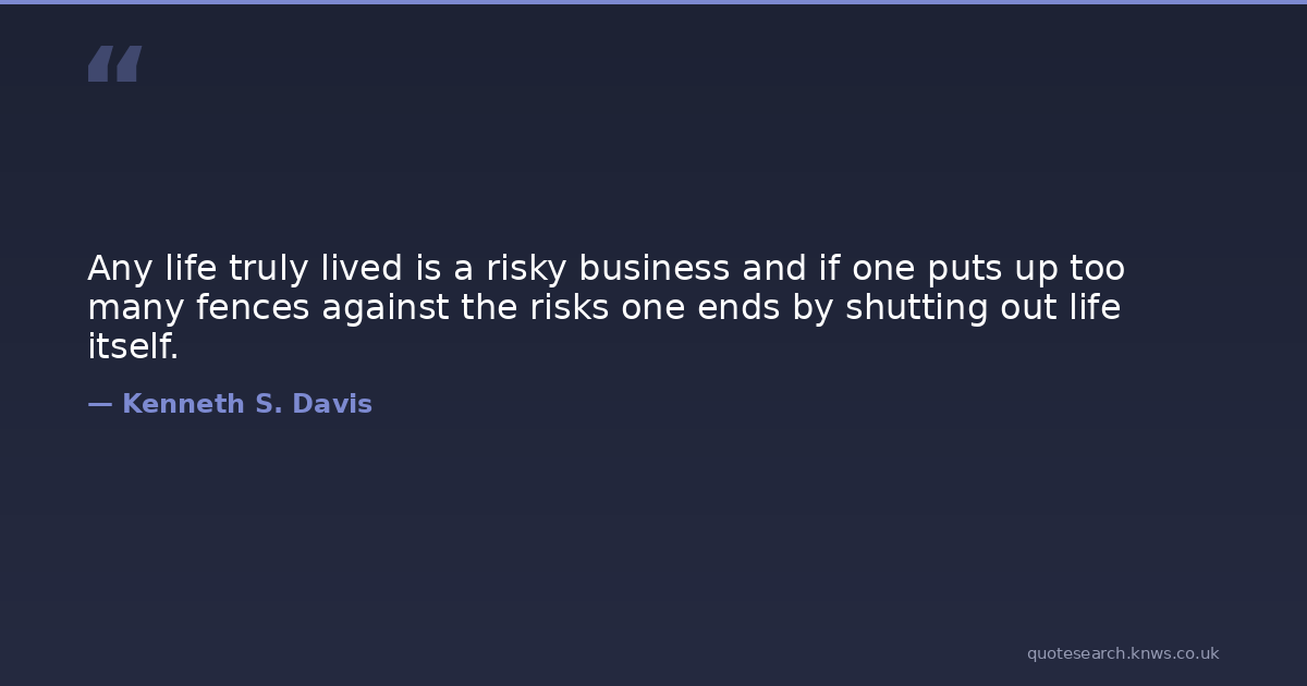 Any life truly lived is a risky business and if one puts up too many fences against the risks one ends by shutting out life itself.