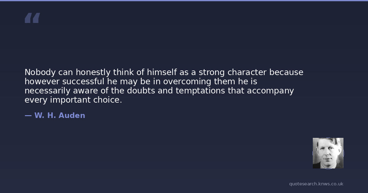 Nobody can honestly think of himself as a strong character because however successful he may be in overcoming them he is necessarily aware of the doubts and temptations that accompany every important choice.
