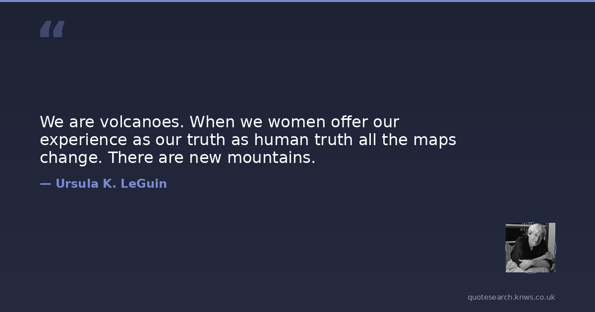 We are volcanoes. When we women offer our experience as our truth as human truth all the maps change. There are new mountains.