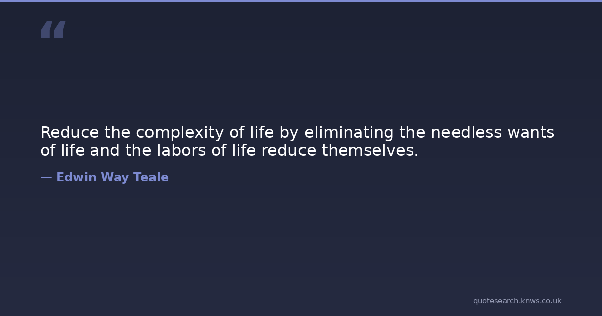 Reduce the complexity of life by eliminating the needless wants of life and the labors of life reduce themselves.