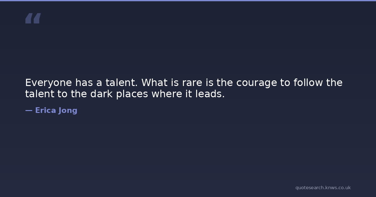 Everyone has a talent. What is rare is the courage to follow the talent to the dark places where it leads.