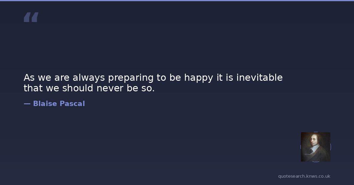 As we are always preparing to be happy it is inevitable that we should never be so.