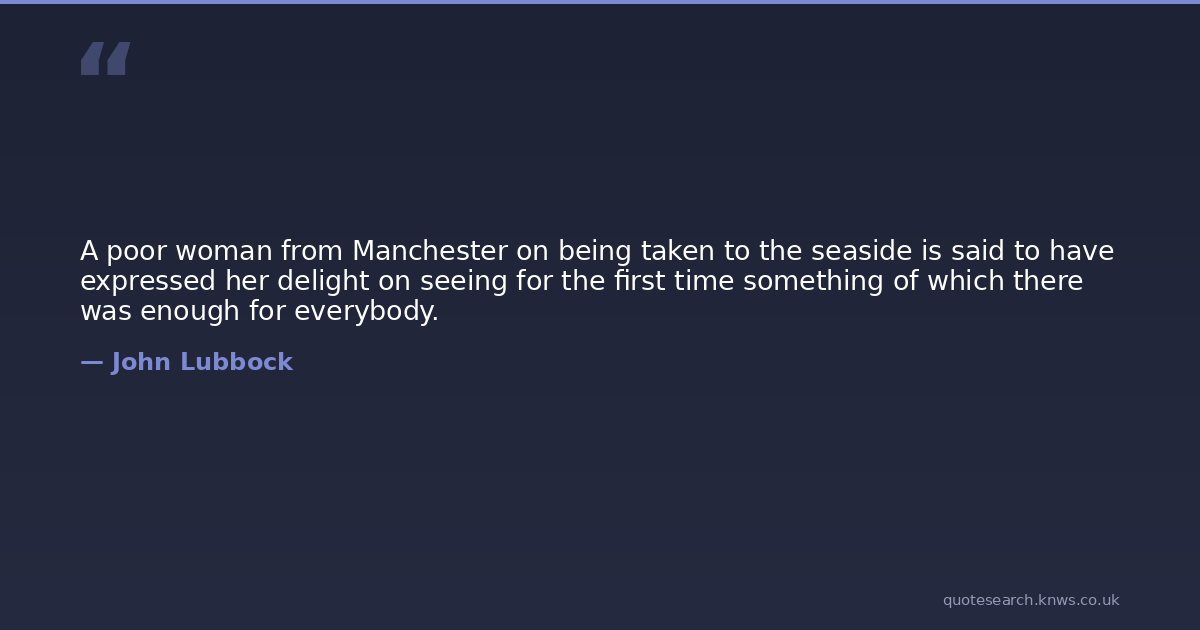 A poor woman from Manchester on being taken to the seaside is said to have expressed her delight on seeing for the first time something of which there was enough for everybody.