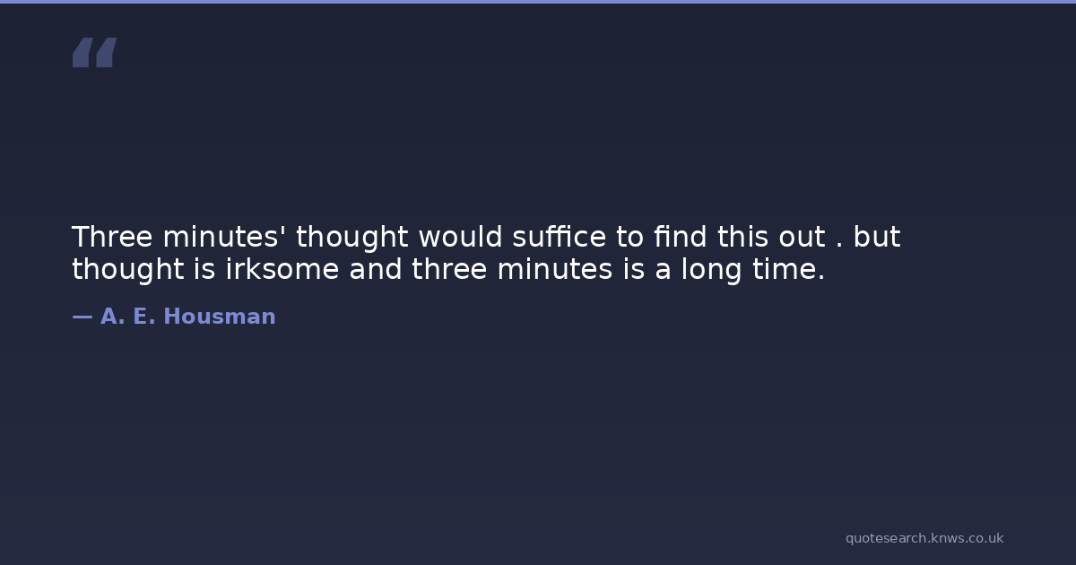 Three minutes' thought would suffice to find this out . but thought is irksome and three minutes is a long time.