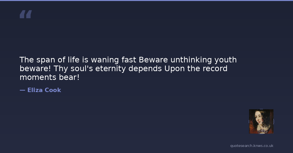 The span of life is waning fast Beware unthinking youth beware! Thy soul's eternity depends Upon the record moments bear!