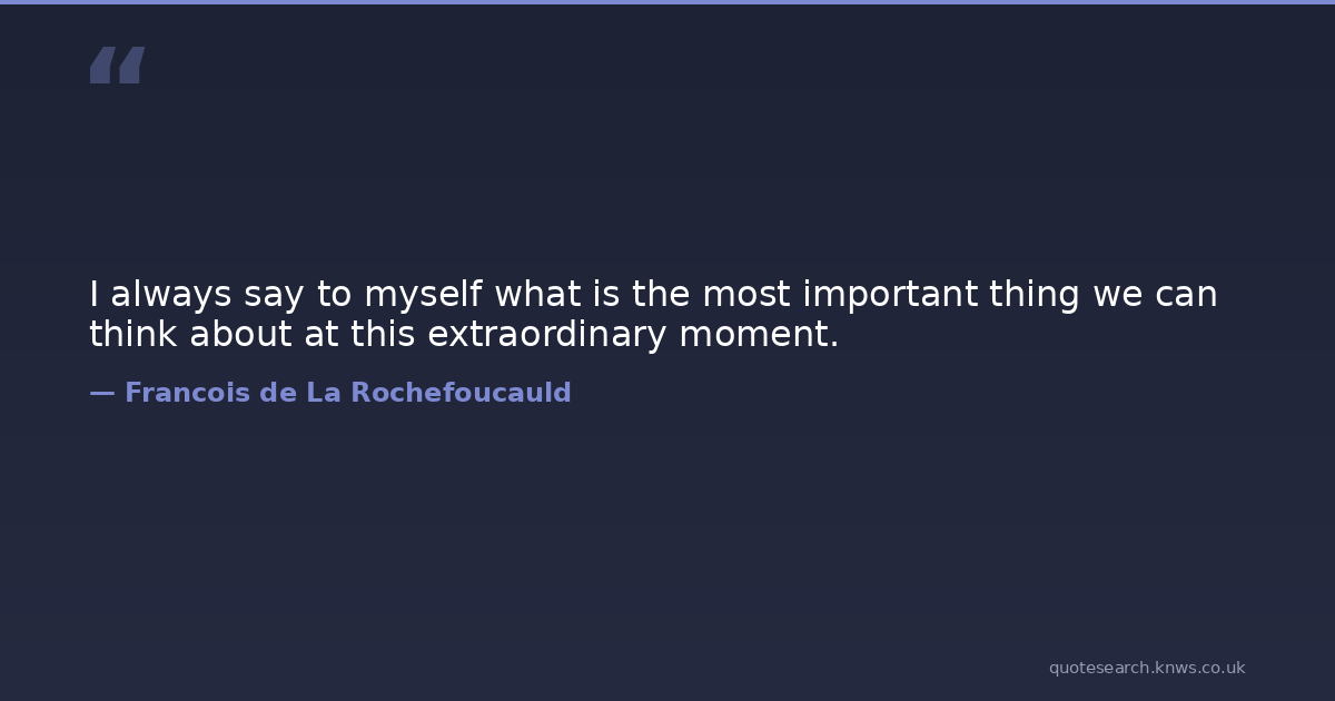I always say to myself what is the most important thing we can think about at this extraordinary moment.