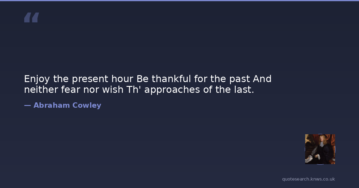 Enjoy the present hour Be thankful for the past And neither fear nor wish Th' approaches of the last.