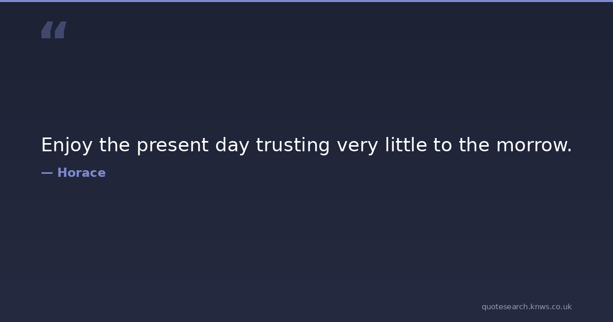 Enjoy the present day trusting very little to the morrow.