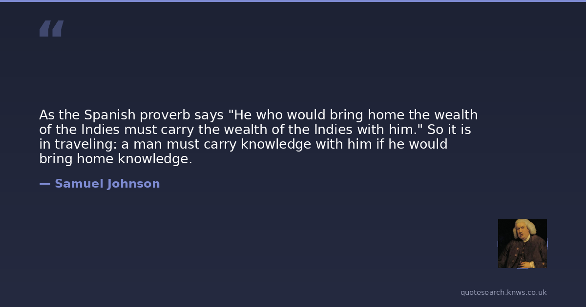 As the Spanish proverb says "He who would bring home the wealth of the Indies must carry the wealth of the Indies with him." So it is in traveling: a man must carry knowledge with him if he would bring home knowledge.