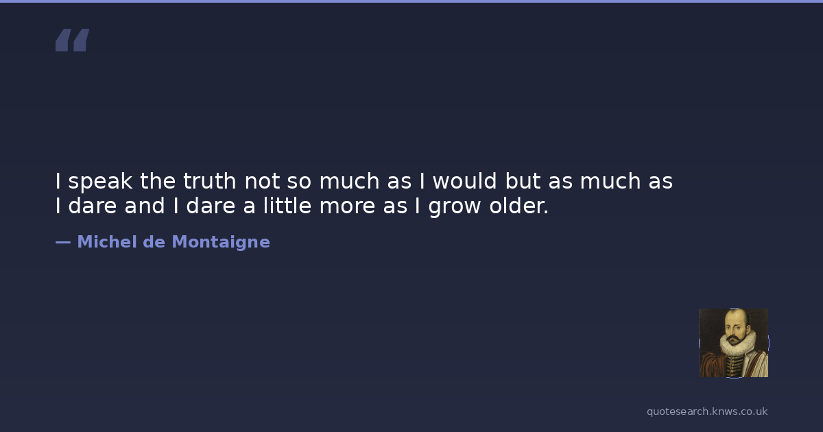 I speak the truth not so much as I would but as much as I dare and I dare a little more as I grow older.
