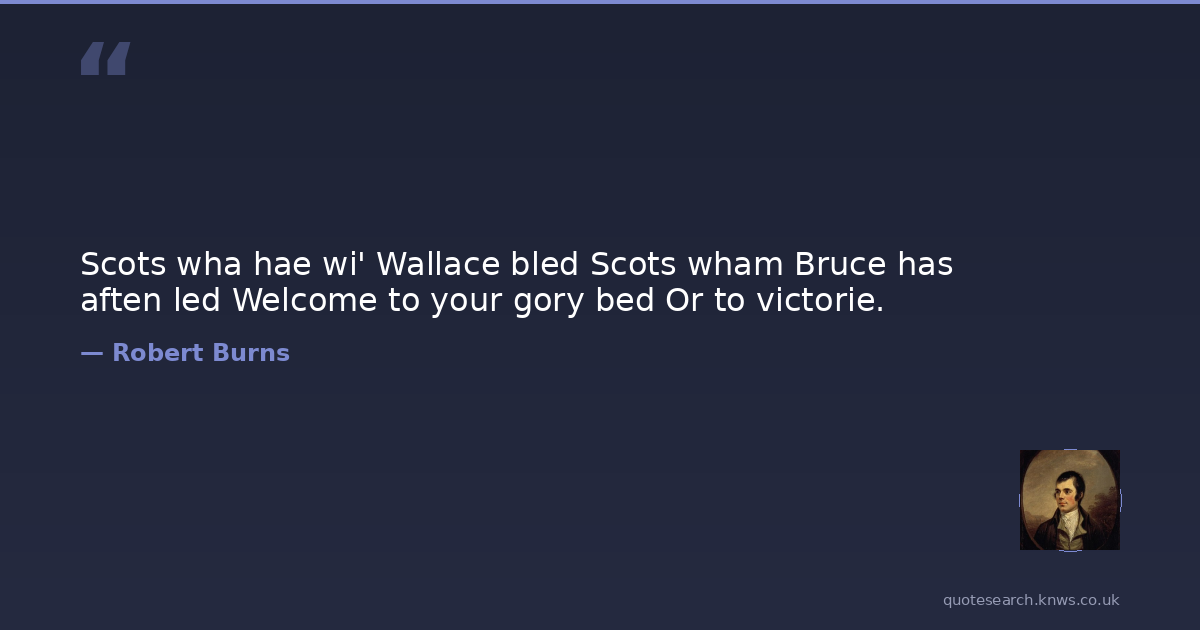 Scots wha hae wi' Wallace bled Scots wham Bruce has aften led Welcome to your gory bed Or to victorie.