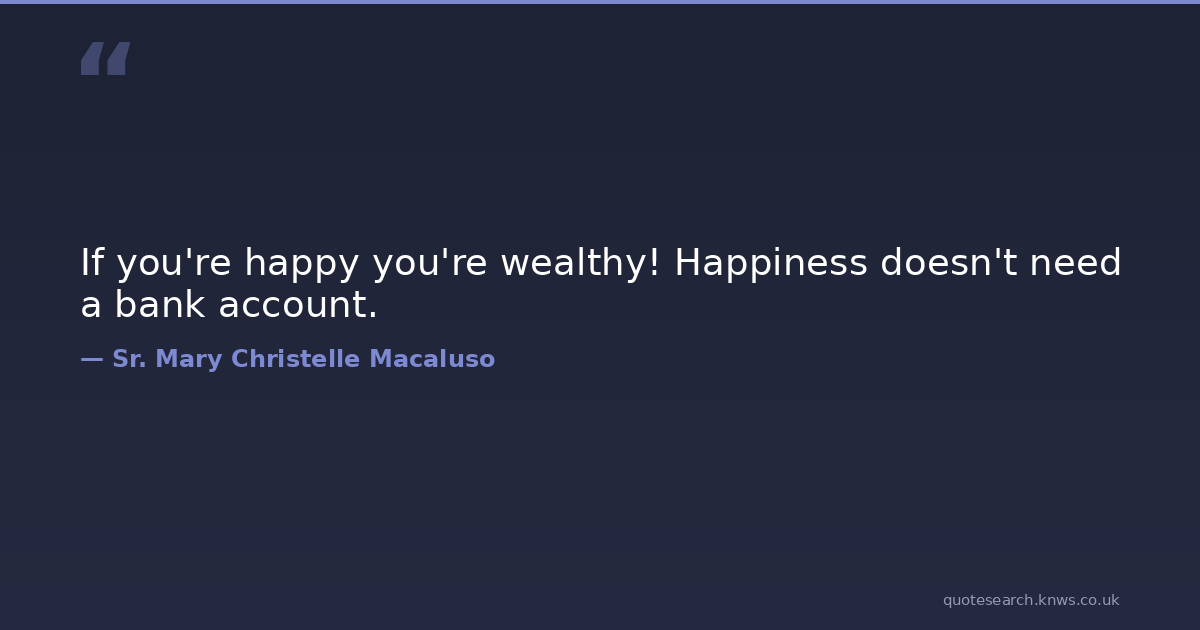 If you're happy you're wealthy! Happiness doesn't need a bank account.