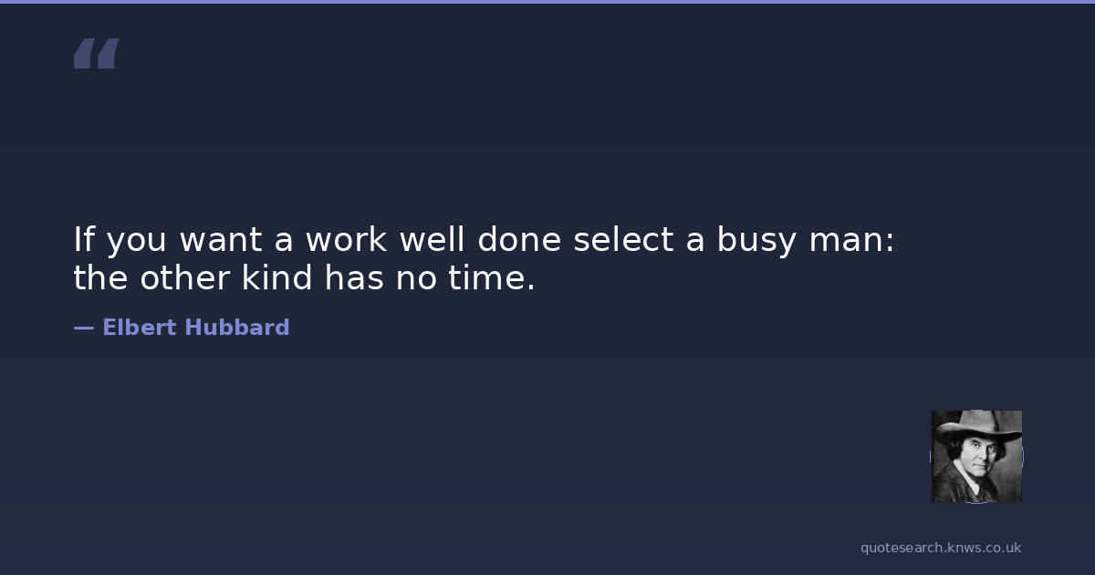 If you want a work well done select a busy man: the other kind has no time.