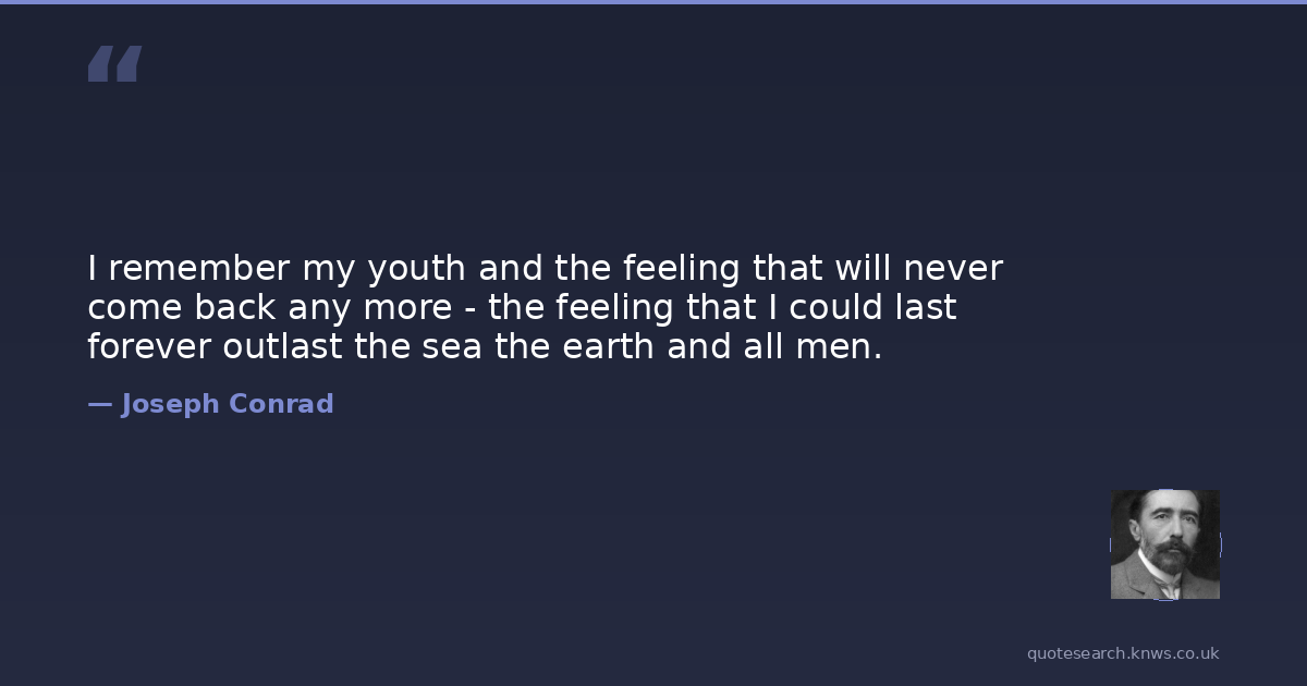 I remember my youth and the feeling that will never come back any more - the feeling that I could last forever outlast the sea the earth and all men.