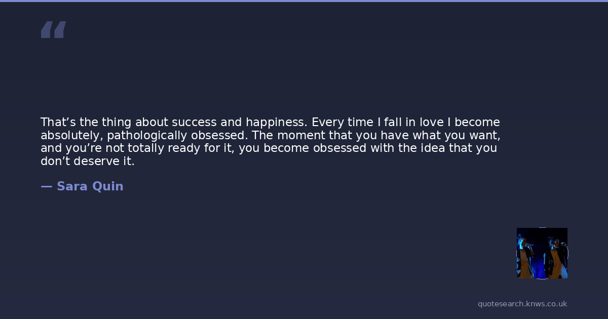 That’s the thing about success and happiness. Every time I fall in love I become absolutely, pathologically obsessed. The moment that you have what you want, and you’re not totally ready for it, you become obsessed with the idea that you don’t deserve it.