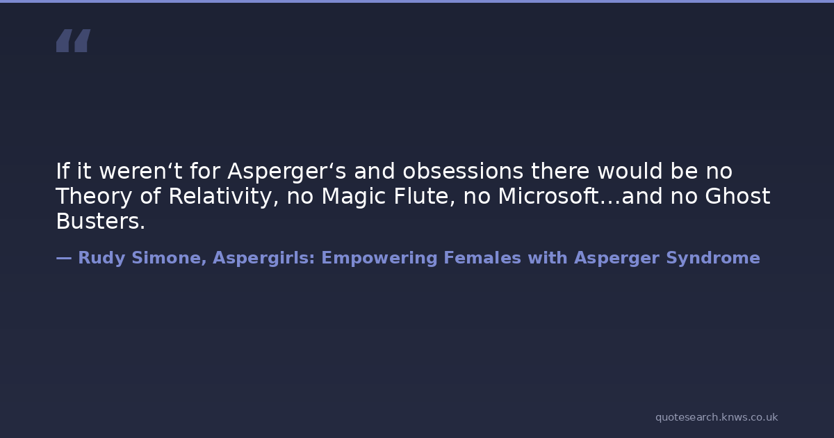 If it weren‘t for Asperger‘s and obsessions there would be no Theory of Relativity, no Magic Flute, no Microsoft…and no Ghost Busters.