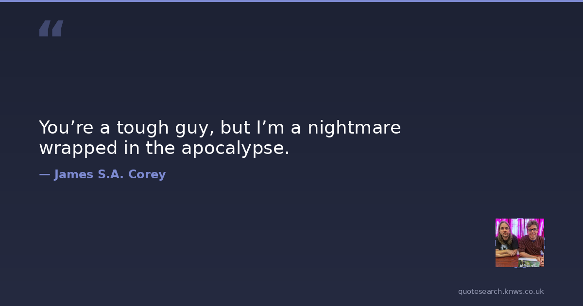 You’re a tough guy, but I’m a nightmare wrapped in the apocalypse.