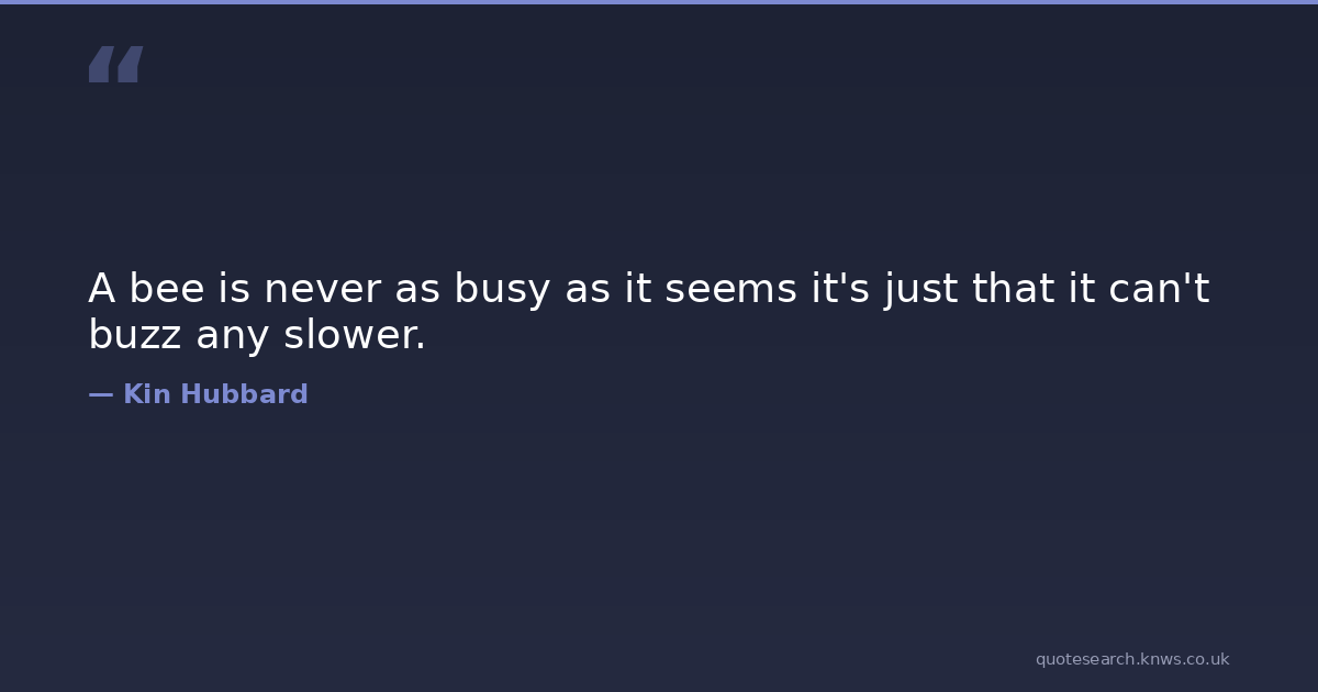 A bee is never as busy as it seems it's just that it can't buzz any slower.