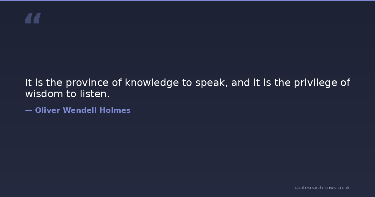 It is the province of knowledge to speak, and it is the privilege of wisdom to listen.