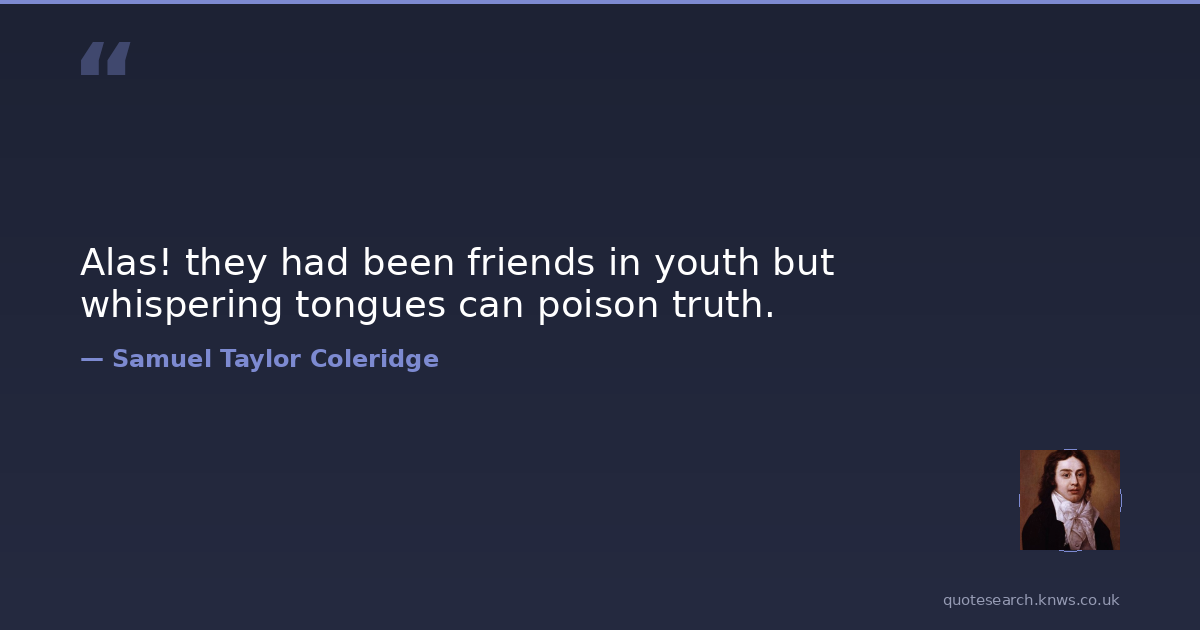 Alas! they had been friends in youth but whispering tongues can poison truth.