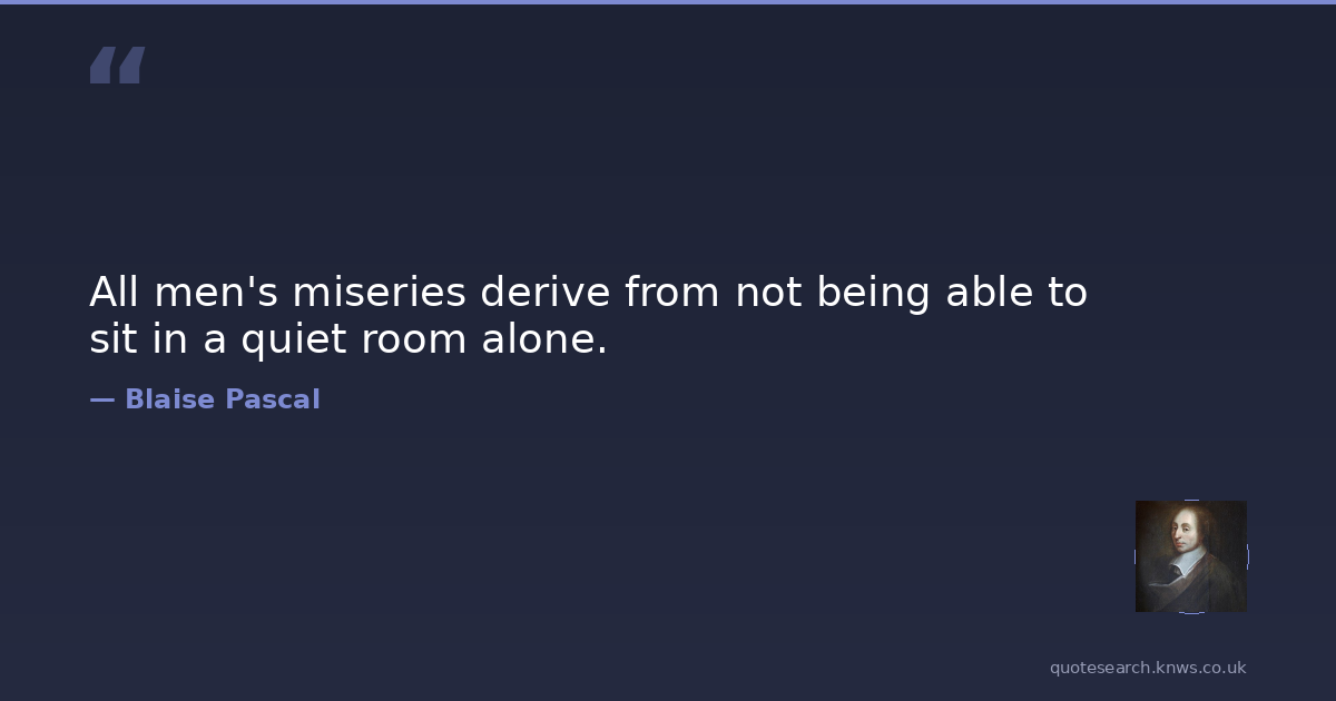 All men's miseries derive from not being able to sit in a quiet room alone.