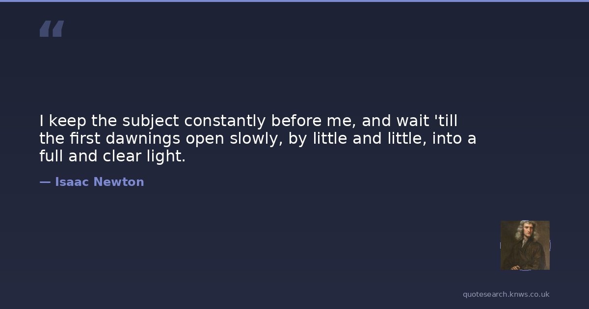 I keep the subject constantly before me, and wait 'till the first dawnings open slowly, by little and little, into a full and clear light.