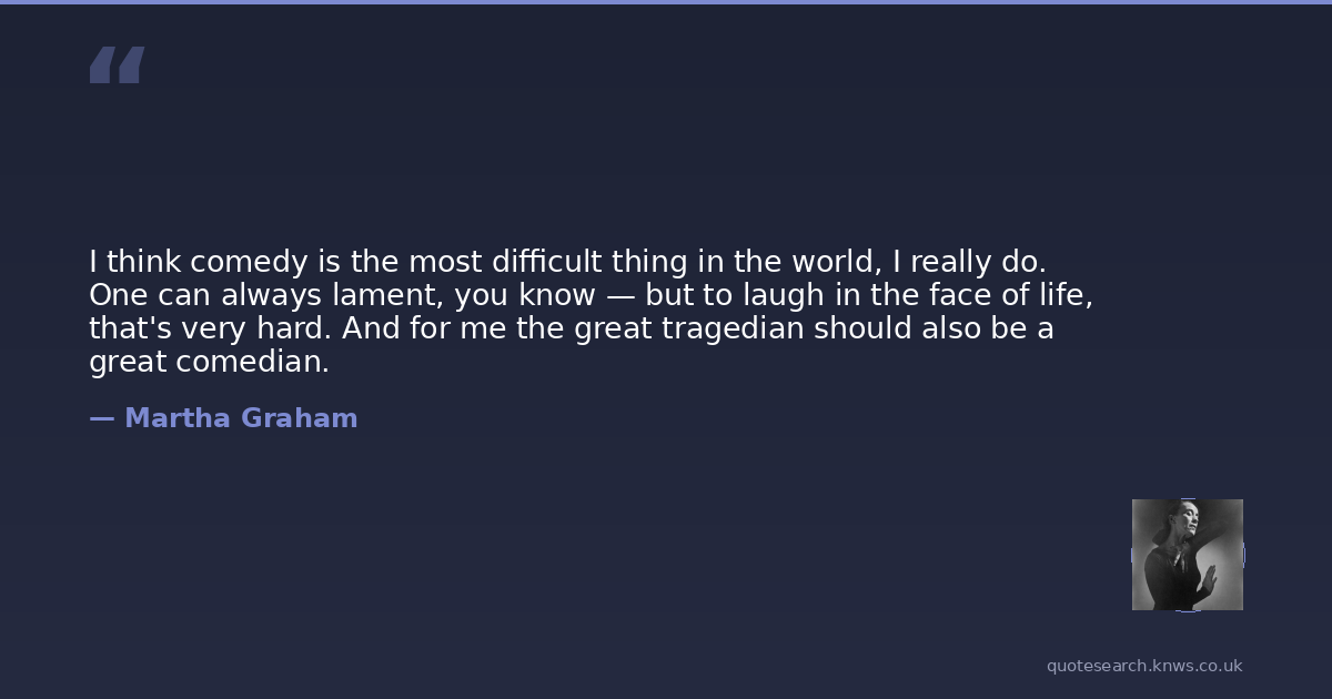 I think comedy is the most difficult thing in the world, I really do. One can always lament, you know — but to laugh in the face of life, that's very hard. And for me the great tragedian should also be a great comedian.