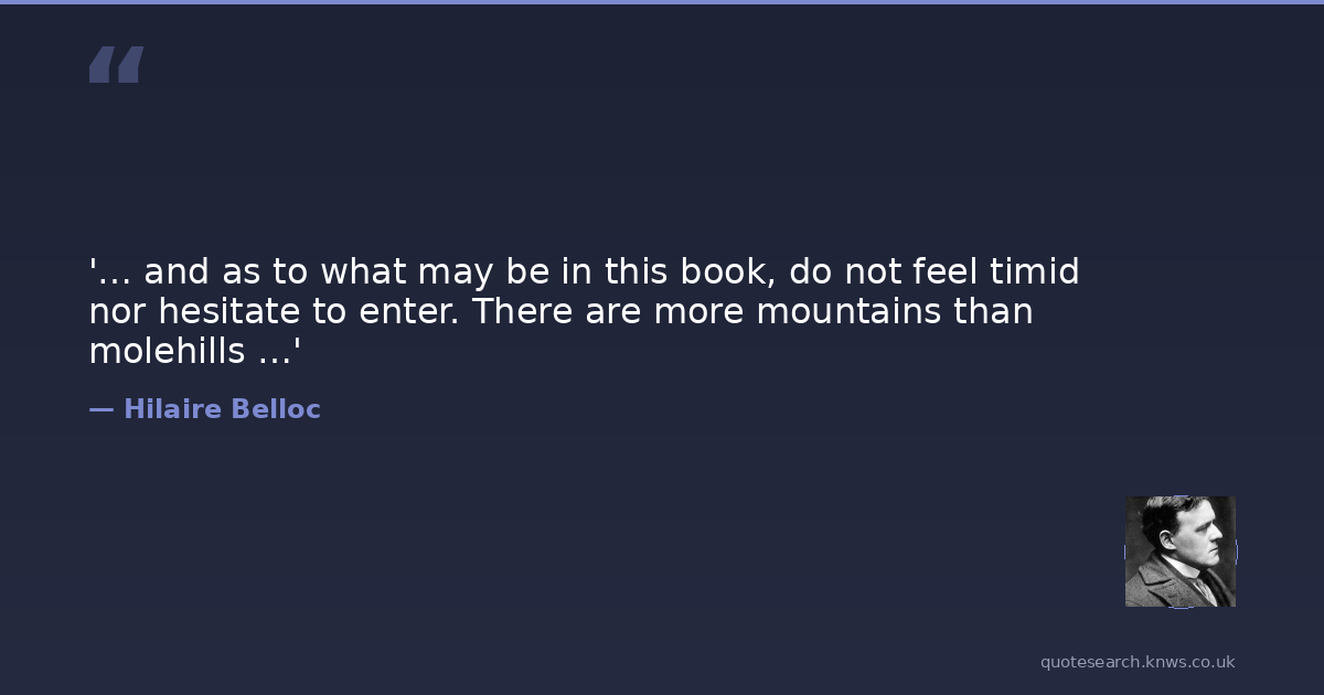 '… and as to what may be in this book, do not feel timid nor hesitate to enter. There are more mountains than molehills …'