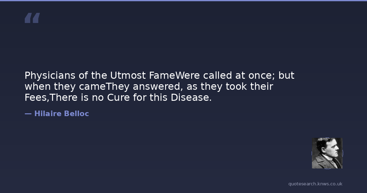 Physicians of the Utmost FameWere called at once; but when they cameThey answered, as they took their Fees,There is no Cure for this Disease.