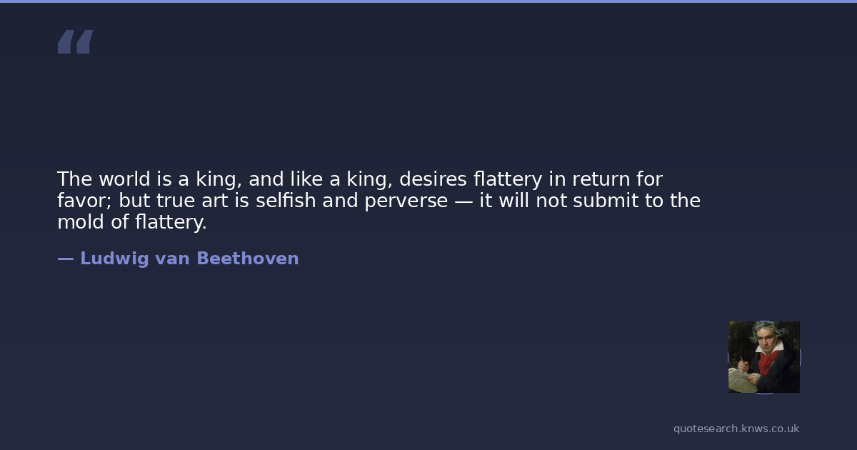 The world is a king, and like a king, desires flattery in return for favor; but true art is selfish and perverse — it will not submit to the mold of flattery.