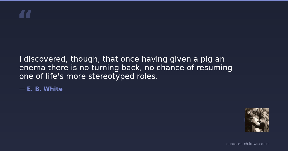 I discovered, though, that once having given a pig an enema there is no turning back, no chance of resuming one of life's more stereotyped roles.