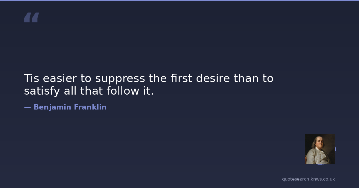 Tis easier to suppress the first desire than to satisfy all that follow it.