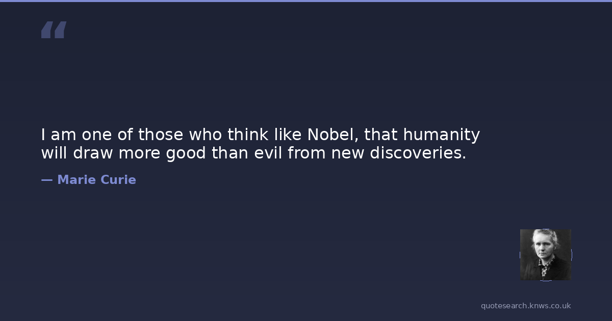 I am one of those who think like Nobel, that humanity will draw more good than evil from new discoveries.