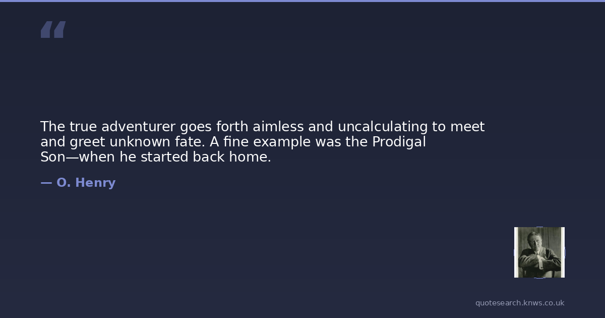 The true adventurer goes forth aimless and uncalculating to meet and greet unknown fate. A fine example was the Prodigal Son—when he started back home.