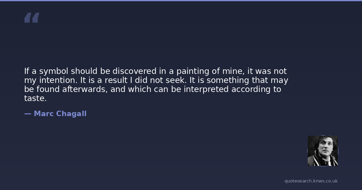 If a symbol should be discovered in a painting of mine, it was not my intention. It is a result I did not seek. It is something that may be found afterwards, and which can be interpreted according to taste.