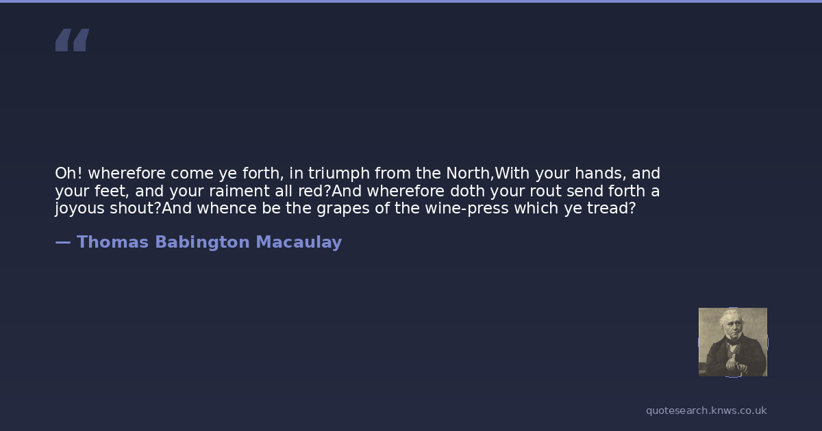 Oh! wherefore come ye forth, in triumph from the North,With your hands, and your feet, and your raiment all red?And wherefore doth your rout send forth a joyous shout?And whence be the grapes of the wine-press which ye tread?