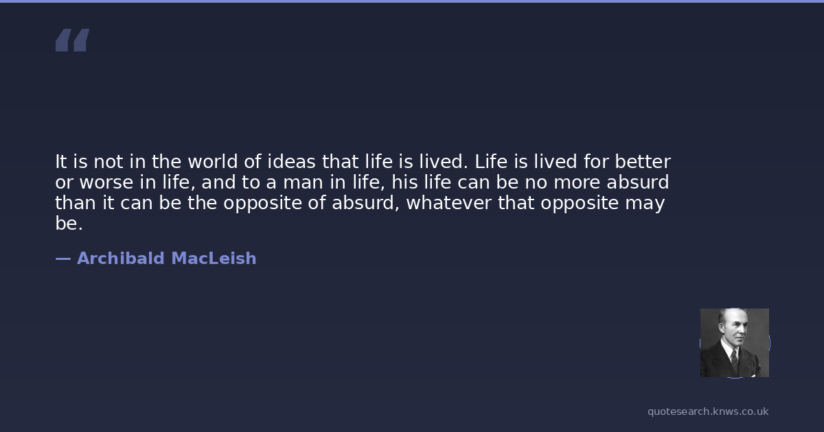 It is not in the world of ideas that life is lived. Life is lived for better or worse in life, and to a man in life, his life can be no more absurd than it can be the opposite of absurd, whatever that opposite may be.