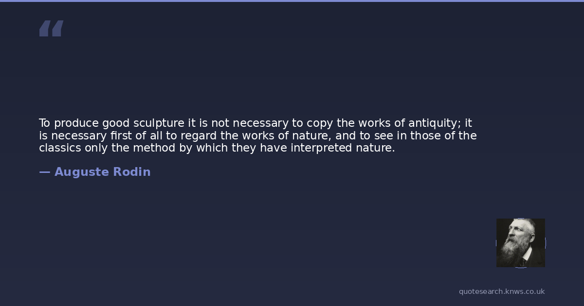 To produce good sculpture it is not necessary to copy the works of antiquity; it is necessary first of all to regard the works of nature, and to see in those of the classics only the method by which they have interpreted nature.