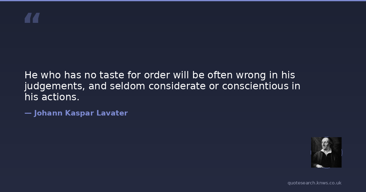 He who has no taste for order will be often wrong in his judgements, and seldom considerate or conscientious in his actions.