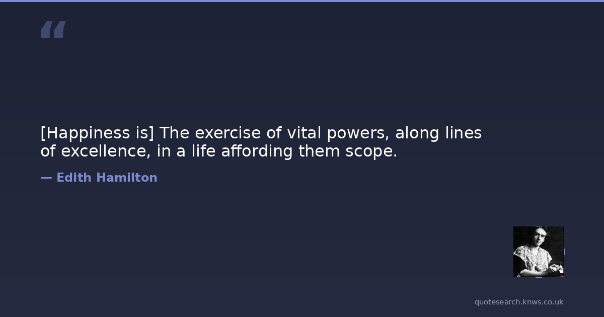 [Happiness is] The exercise of vital powers, along lines of excellence, in a life affording them scope.