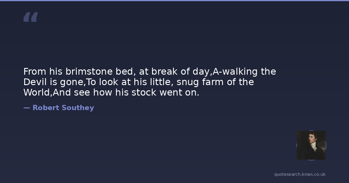 From his brimstone bed, at break of day,A-walking the Devil is gone,To look at his little, snug farm of the World,And see how his stock went on.