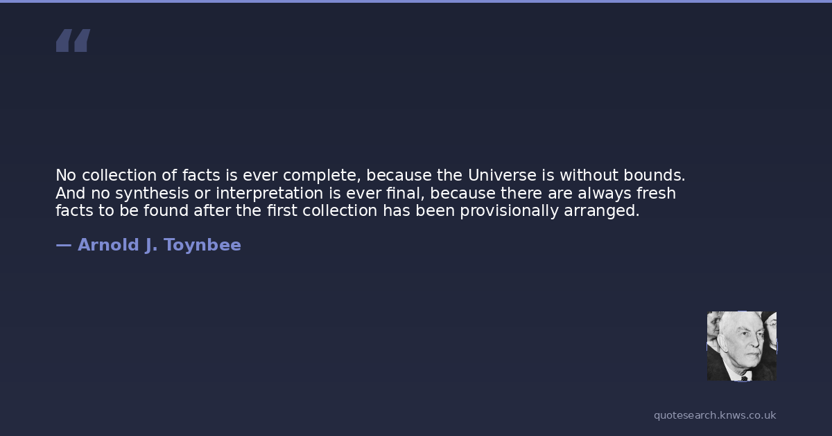 No collection of facts is ever complete, because the Universe is without bounds. And no synthesis or interpretation is ever final, because there are always fresh facts to be found after the first collection has been provisionally arranged.