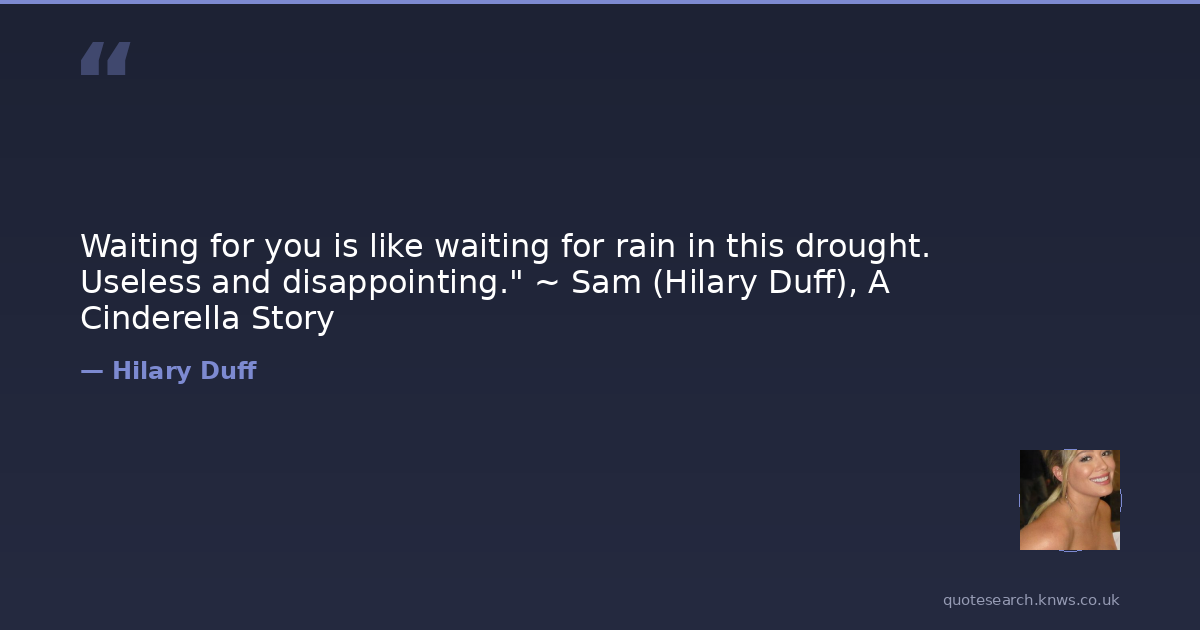 Waiting for you is like waiting for rain in this drought. Useless and disappointing." ~ Sam (Hilary Duff), A Cinderella Story