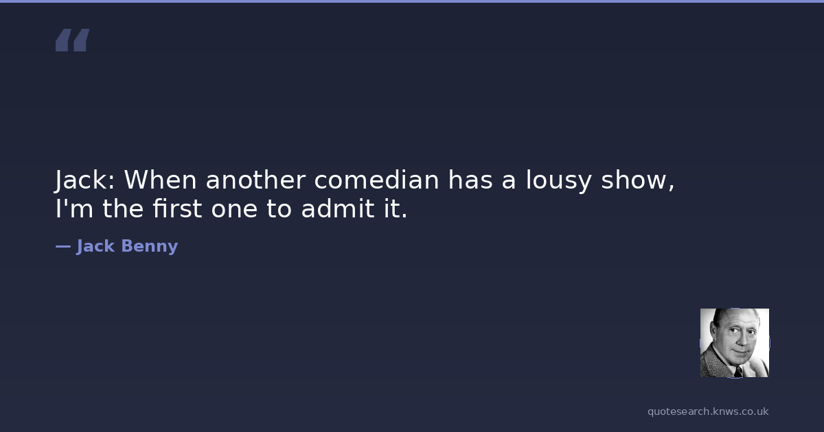 Jack: When another comedian has a lousy show, I'm the first one to admit it.