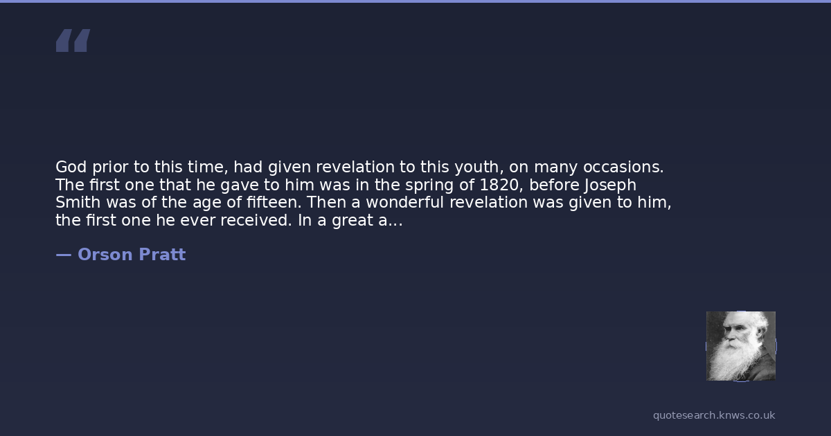 Orson Pratt was a 19th-century American mathematician and religious leader. Orson Pratt Sr. was an American religious leader and mathematician who was an original member of the Quorum of the Twelve Apostles of the Church of Christ. Read more on Wikipedia →