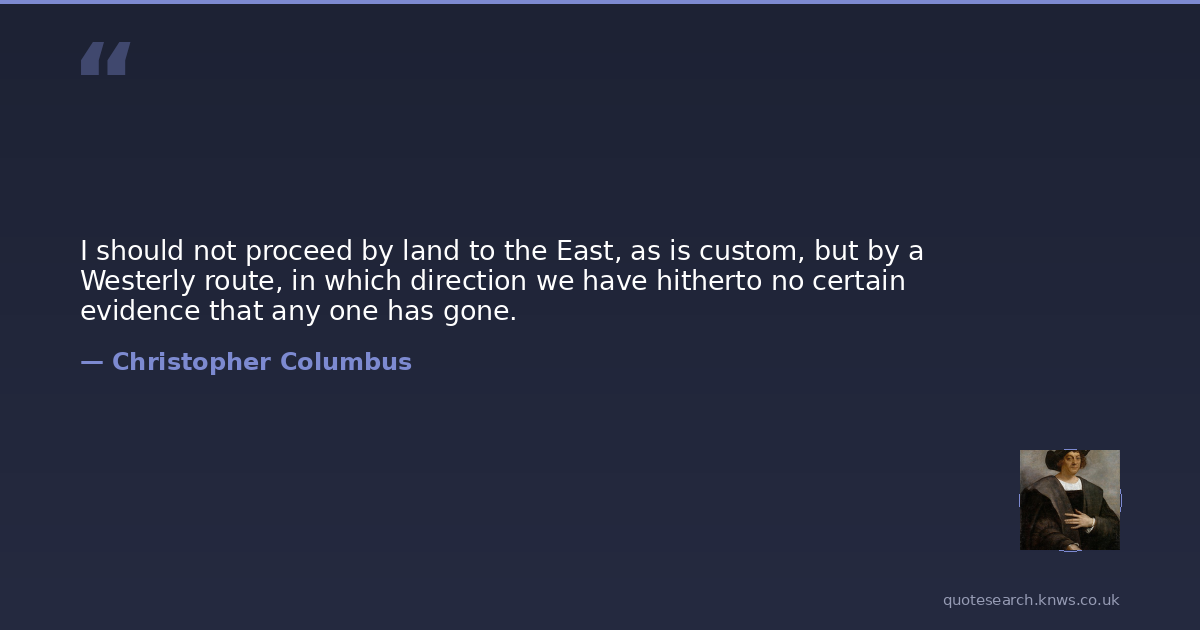 I should not proceed by land to the East, as is custom, but by a Westerly route, in which direction we have hitherto no certain evidence that any one has gone.