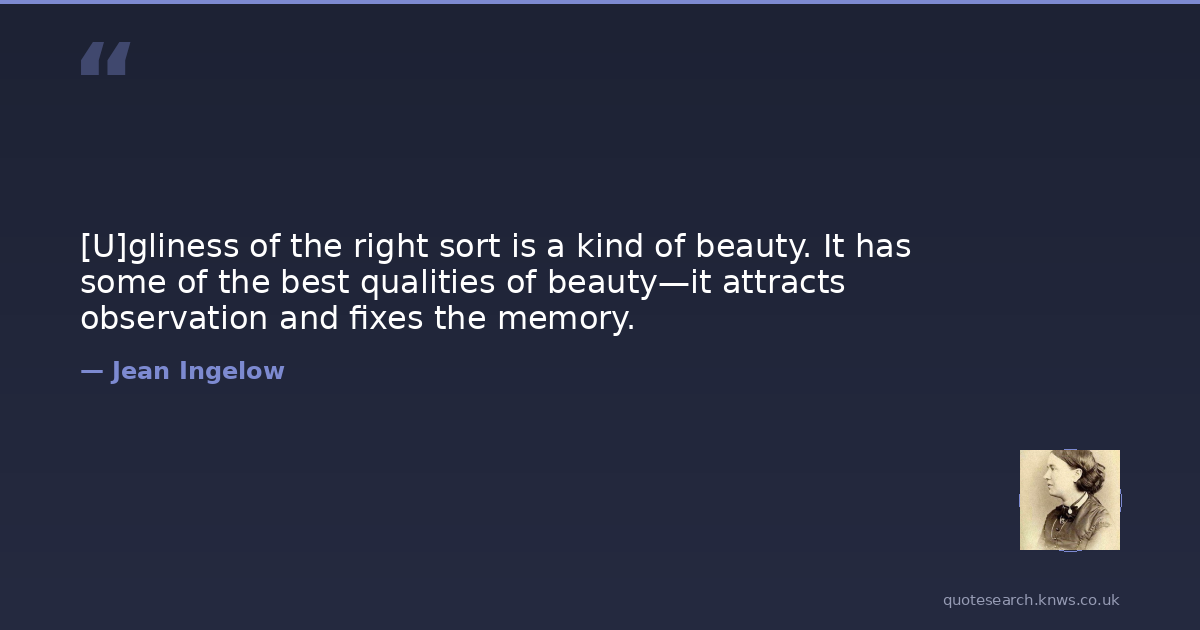 [U]gliness of the right sort is a kind of beauty. It has some of the best qualities of beauty—it attracts observation and fixes the memory.