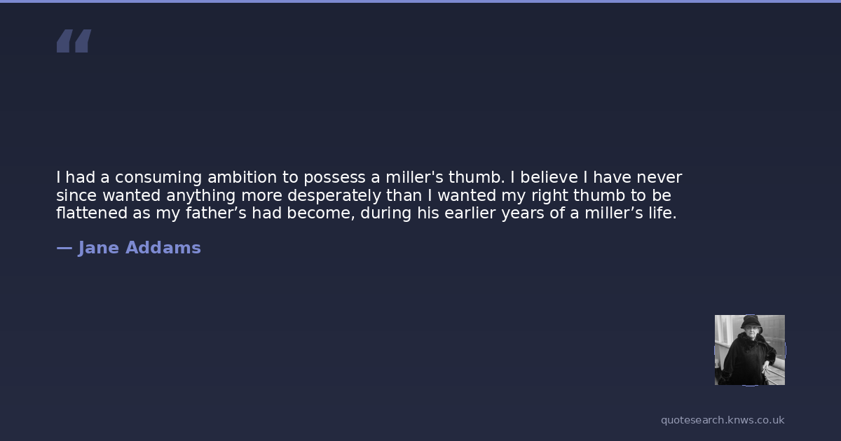 I had a consuming ambition to possess a miller's thumb. I believe I have never since wanted anything more desperately than I wanted my right thumb to be flattened as my father’s had become, during his earlier years of a miller’s life.